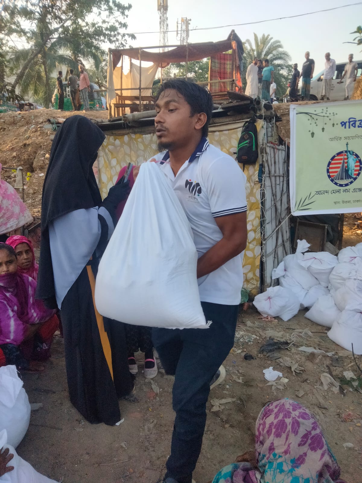 উত্তরা এলাকার সবচেয়ে দরিদ্র মানুষের বসবাস সম্ভবত আব্দুল্লাহপুর সংলগ্ন সিকদার বাড়ি বস্তি। এই বস্তির সুবিধাবঞ্চিত নিম্নআয়ের মানুষদের মাঝে চাল, ডাল, তেল, লবন, পেঁয়াজসহ অন্যান্য নিত্যপ্রয়োজনীয় দ্রব্যাদিসমূহ (১৭ কেজি) বিতরণ করেছে পারি ফাউন্ডেশন। এই রমজানে চাইলে আপনিও সুবিধাবঞ্চিত নিম্নআয়ের মানুষদের পাশে দাঁড়িয়ে অশেষ নেকি হাসিল করতে পারেন।