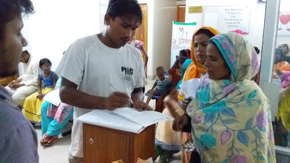 Only taking 2 takas (BDT) Pari Foundation is arranging medical treatment from experts and providing free medicines to the helpless, destitute people who can hardly achieve any treatment without money. These people are coming to Uttara Cardio Care Hospital and availing this service of medical treatment by paying 2 takas, which is only the token price to present the program as exchanging services to the poor people . Among these beneficiaries, there are slum dwellers, disadvantaged children and adolescents, Rickshaw/Van pullers, home workers, road cleaners, guards, day workers, hawkers and others.